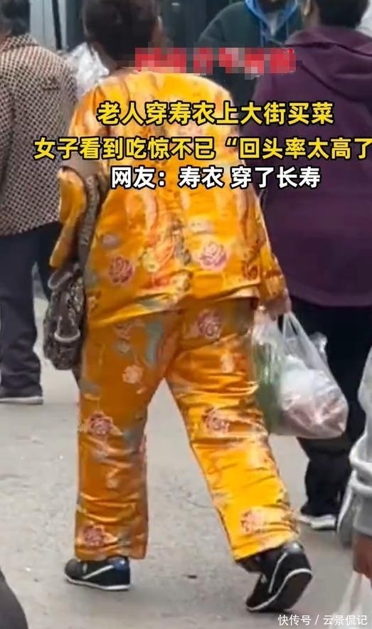 老人穿寿衣上街买菜,回头率高的惊人,网友:寿衣,穿了长寿的!